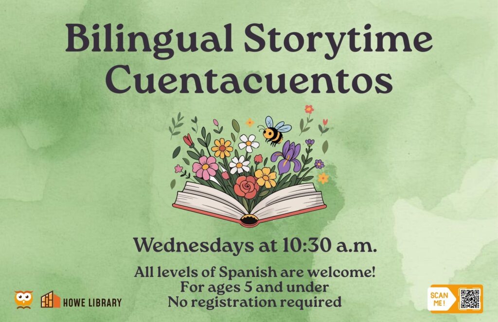 Enjoy stories, songs, and rhymes in English and Spanish! All levels of Spanish are welcome—from fluent speakers to those exploring the language for the first time. Recommended for children ages 5 and under and their caregivers. No registration required. We recommend arriving early to allow time for parking.
